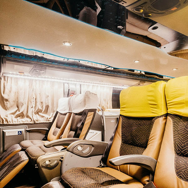 Any coach bus in our fleet has the necessary amenities to make your trip comforting and enjoyable. In our bus rentals, you can enjoy amenities like individual DVD players per seat, a pa system, power outlets, climate-controlled interiors, free wifi, flat-screen TVs, leather seats, restrooms, ample storage space, and more while on the route.